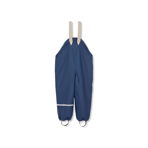 - Up to and including size 104, the rain pants are made with adjustable suspenders and a plastic buckle at the front.