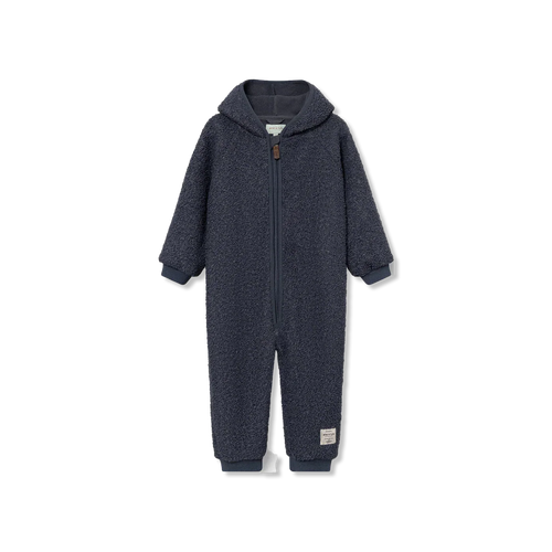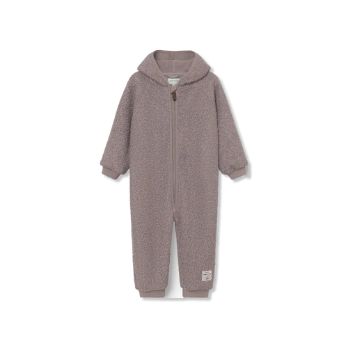 Der Overall ist mit weichem Fleece gefüttert und hat eine markante, spitz zulaufende Kapuze mit Quaste. In den Größen 1 m/56 cm bis 6 m/68 cm sind Ärmel und Beine mit integrierten, faltbaren Fäustlingen und Socken versehen. Ab Größe 9 m/74 cm sind Ärmel und Beine mit bequemen Rippbündchen abgesetzt.